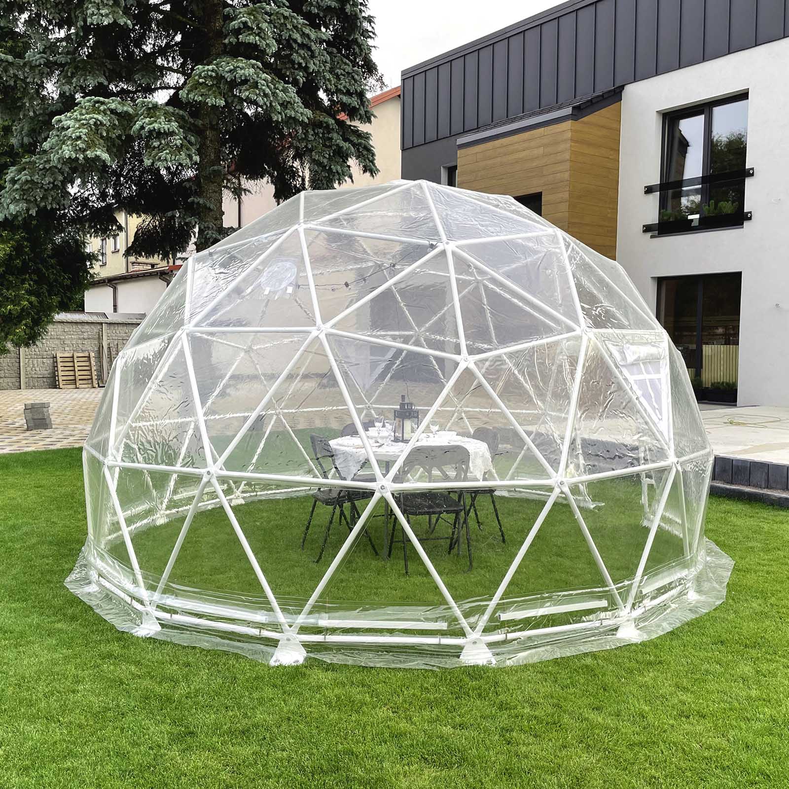 Sfēriskā telts jeb glempings būs lieliski piemērots un noderīgs jebkurai lauku sētai vai pludmalei vai pat pilsētas kvartālos. Kupols ir skaists un daudzfuncionāls.