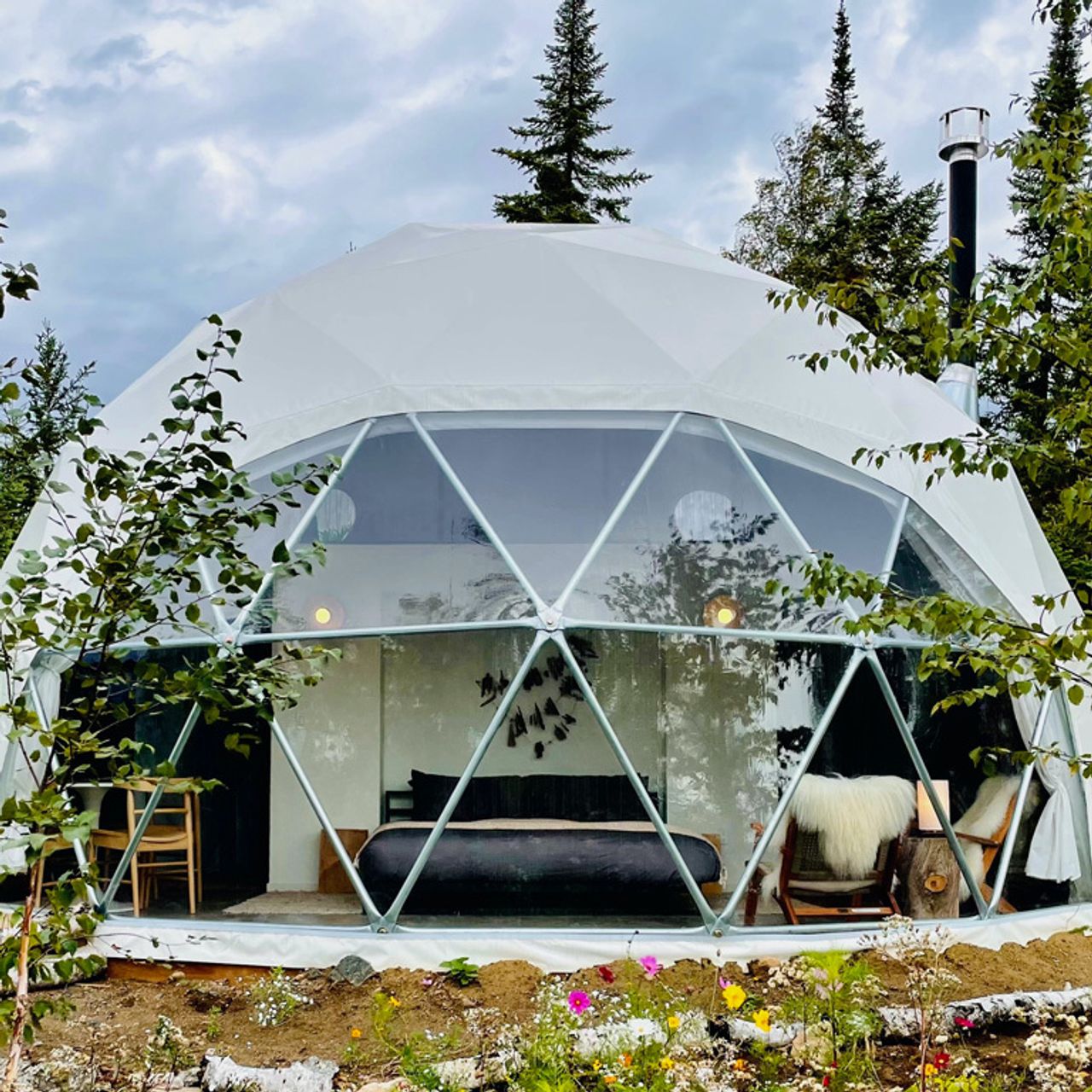 Pateicoties lielajam ārējā apvalka pamatsvaram un iekšējam izolācijas slānim, mūsu kupolveida teltis var izmantot visu gadu. Turklāt telts ir aprīkota ar ventilācijas atverēm un saules ventilatoru. Ir iespējams arī uzstādīt gaisa kondicionieri.