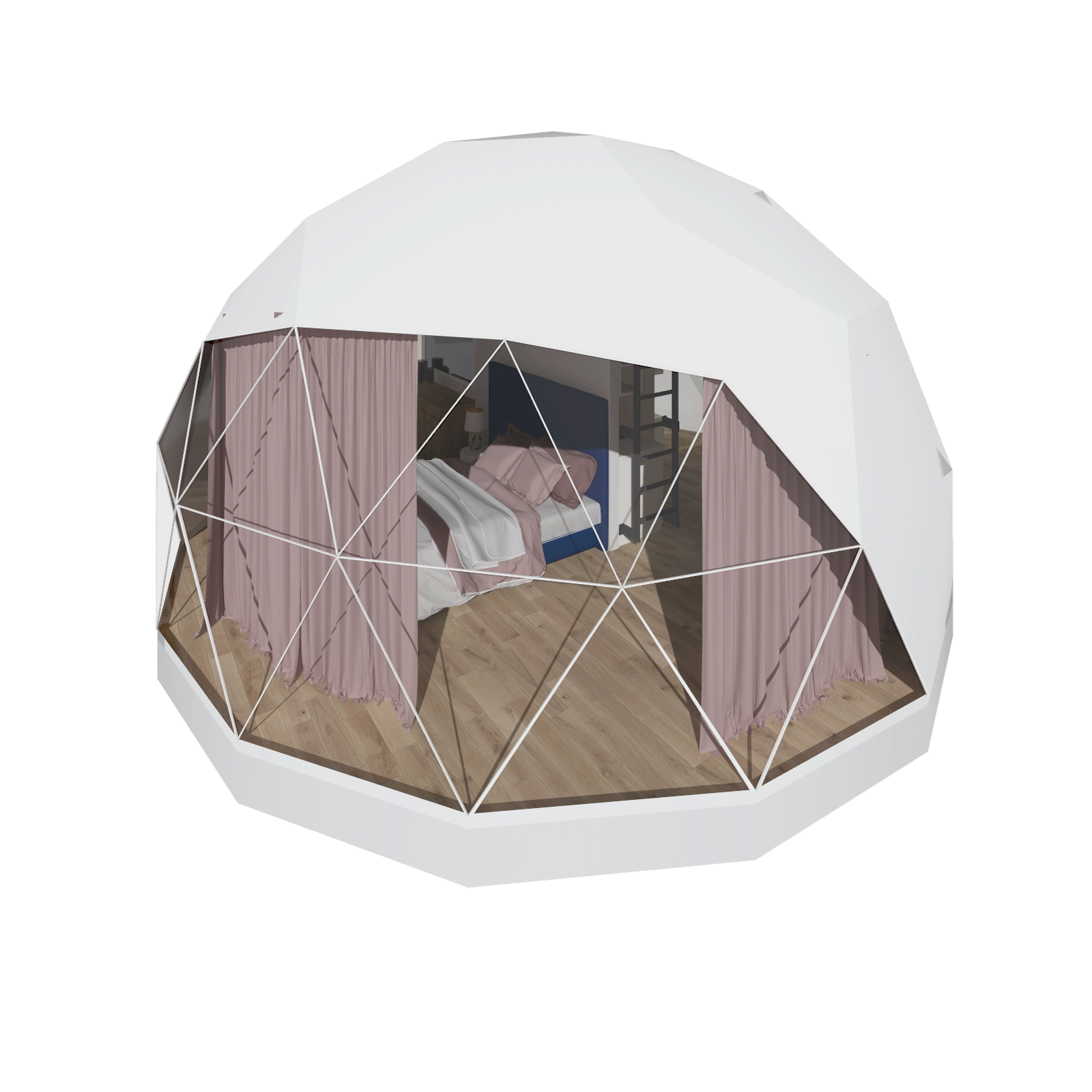 Sfēriskā telts jeb glempings būs lieliski piemērots un noderīgs jebkurai lauku sētai vai pludmalei vai pat pilsētas kvartālos. Kupols ir skaists un daudzfuncionāls.