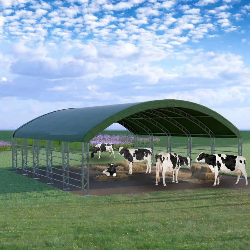 Dzīvnieku audzēšana ir prasīga nodarbošanās, tāpēc, lai nodrošinātu dzīvniekiem labākos apstākļus, esam izveidojuši ganību nojumi. Tā piedāvā ērtu piekļuvi, optimālu ventilāciju un ātru montāžu, kā arī ir efektīva pajumte no lietus un saules. Ganību nojume ir ideāla vieta dzīvnieku barošanai un dzirdināšanai. Zem jumta novietotā barība saglabājas sausa un ēdama daudzas dienas.