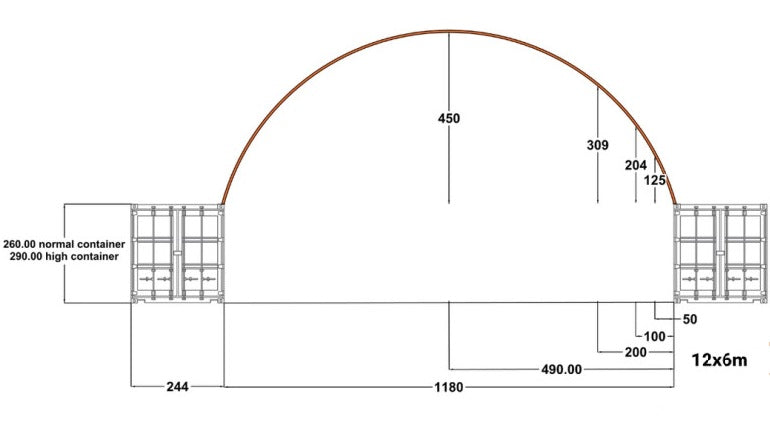 Atsevišķas konteineru nojumes ar papildu priekšējiem un aizmugurējiem paneļiem var nodrošināt pēc pieprasījuma, bet par papildu samaksu un ar ilgāku piegādes laiku.